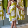 • 🟨 Lime yellow & white brushstroke print – Unique, trendy, and summery